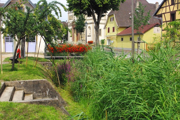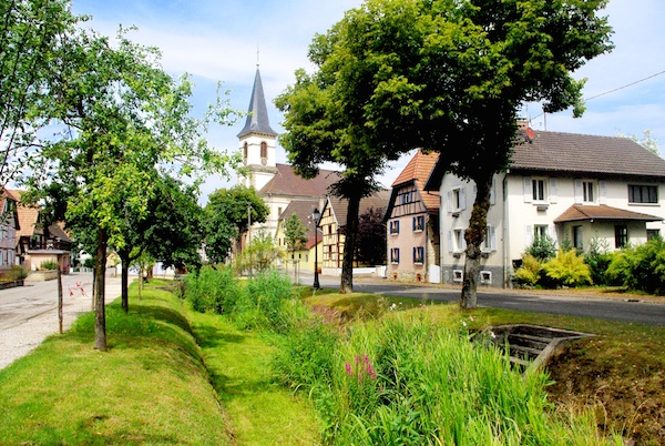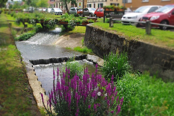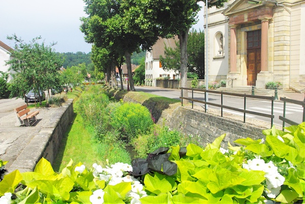 Le ruisseau est l’épine dorsale du village. Traversé par de petits ponts fleuris, il est bordé de tilleuls et de part et d’autre de belles maisons à colombages.
