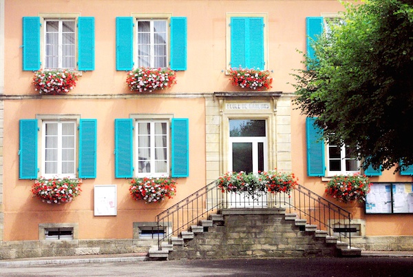 L’ancienne école des garçons avec ses volets aux couleurs vives :
